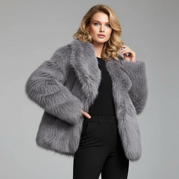 Deslumbra con este abrigo de pelo sintético premium, diseñado para elevar cualquier look con un toque de elegancia y sofisticación.
