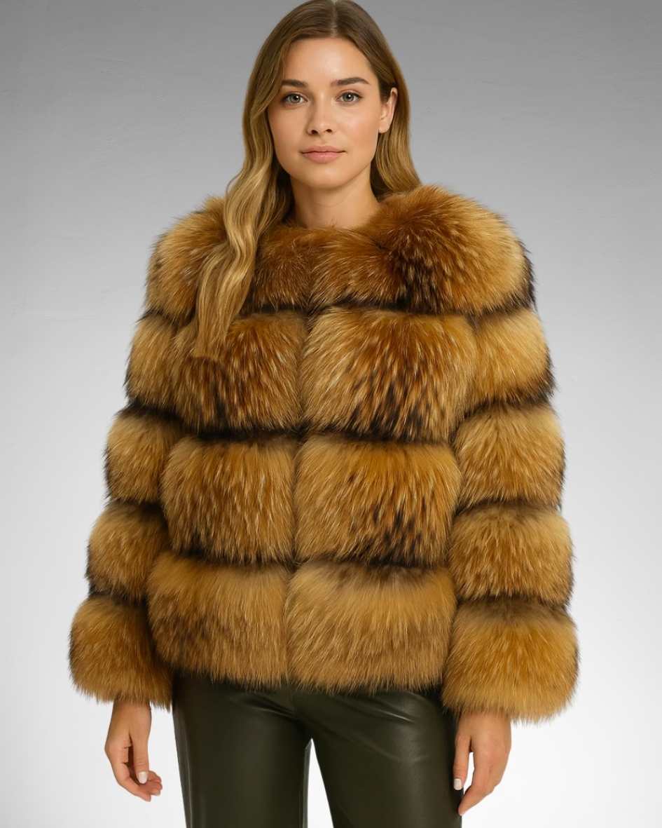 Abrigo corto de peluche sintético efecto visón, con un acabado voluminoso y elegante que aporta un toque de glamour a cualquier look. Su textura suave y su diseño acolchado ofrecen calidez sin renunciar al estilo. Ideal para ocasiones especiales o looks urbanos sofisticados.