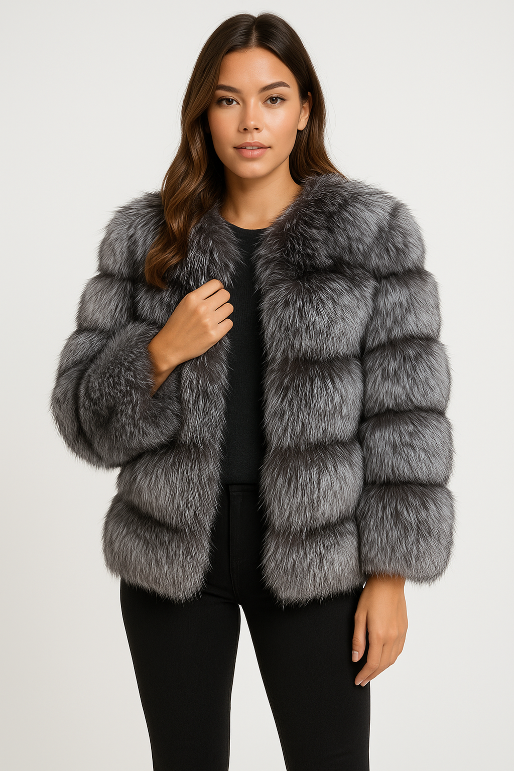Abrigo corto de peluche sintético efecto visón, con un acabado voluminoso y elegante que aporta un toque de glamour a cualquier look. Su textura suave y su diseño acolchado ofrecen calidez sin renunciar al estilo. Ideal para ocasiones especiales o looks urbanos sofisticados.